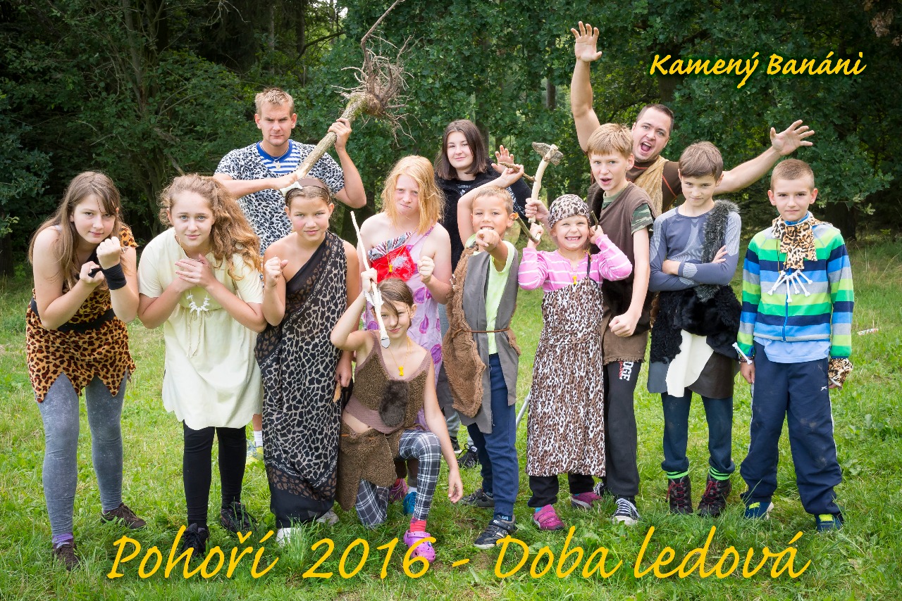 V létě 2016 jsme se s táborem podívali do Doby ledové. Projeli jsme dírou v čase a dostali se do pravěku, kde jsme mimojiné lyžovali, koulovali se, stavěli sněhuláky, ale také prokázali odvahu spaním v lese a prozkoumáním okolí na noční bojovce.